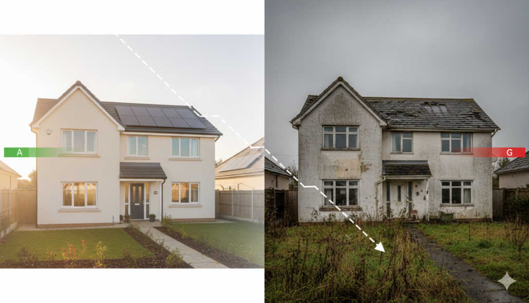 EPC rating degradation over time - house comparison showing rating decline